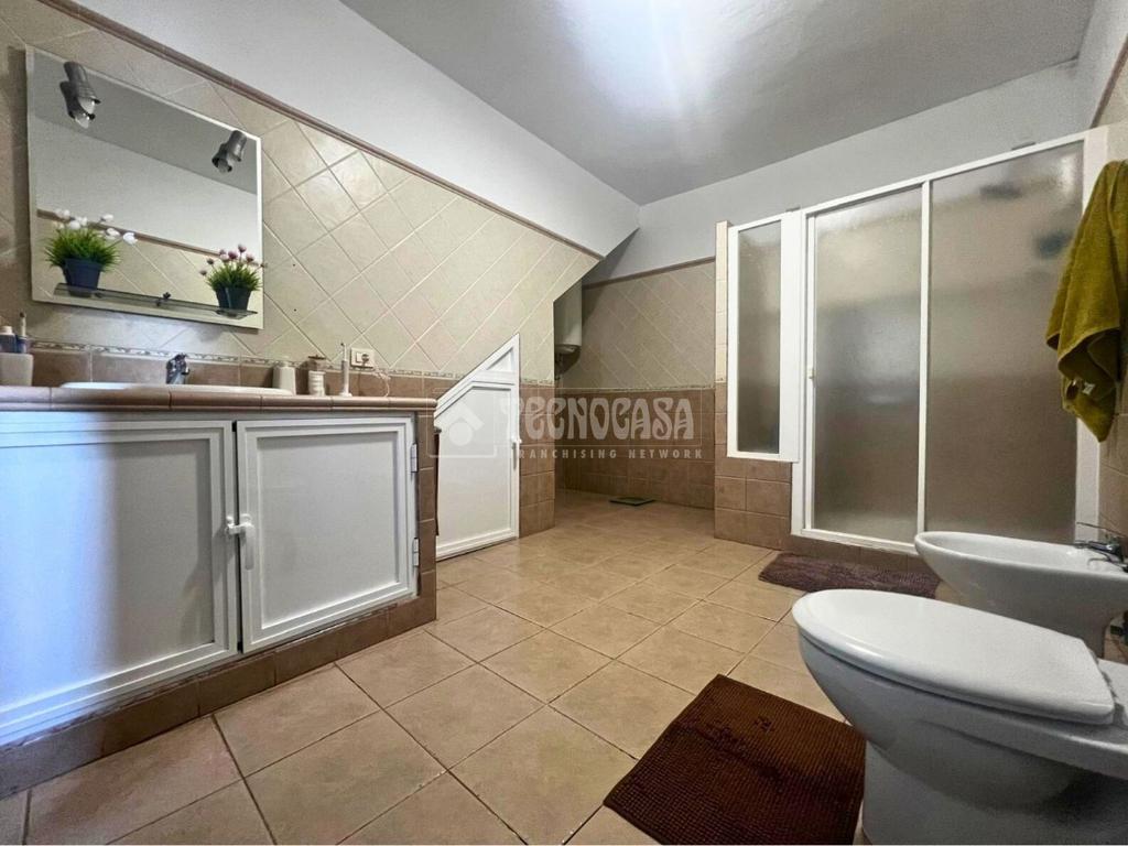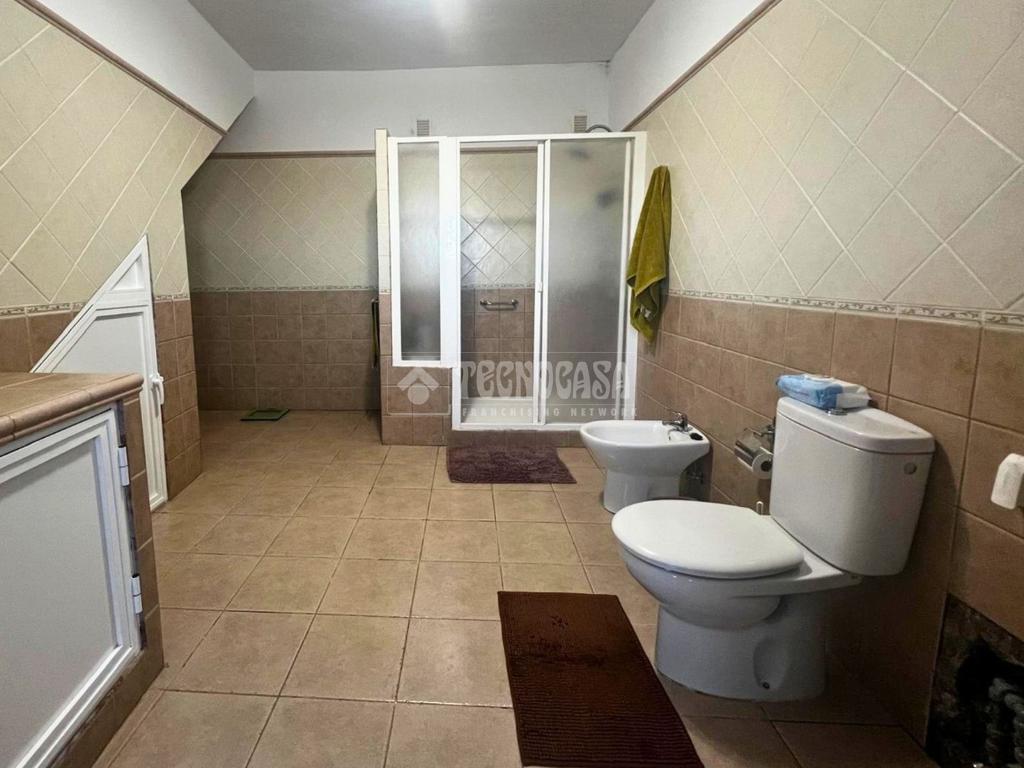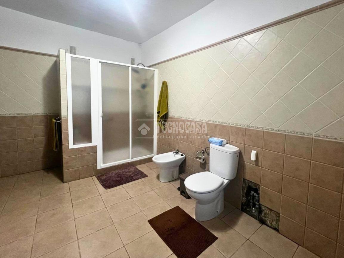 Al acceder a la vivienda, en la planta baja nos recibe un amplio pasillo que distribuye las distintas estancias. A mano derecha encontramos un baño completo, reformado recientemente. Seguidamente, una puerta da acceso a las escaleras que conducen a la planta superior, compuestas por 14 peldaños.