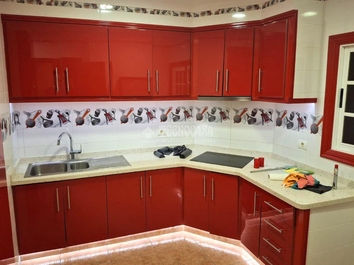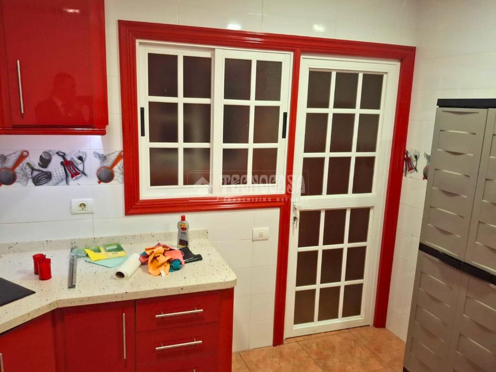 Desde el salón accedemos a una habitación de tamaño más reducido, ideal como dormitorio individual, despacho o zona de trabajo. A continuación, encontramos una cocina independiente y espaciosa, muy cómoda para el día a día, que cuenta con solana, aportando un extra de funcionalidad y ventilación.